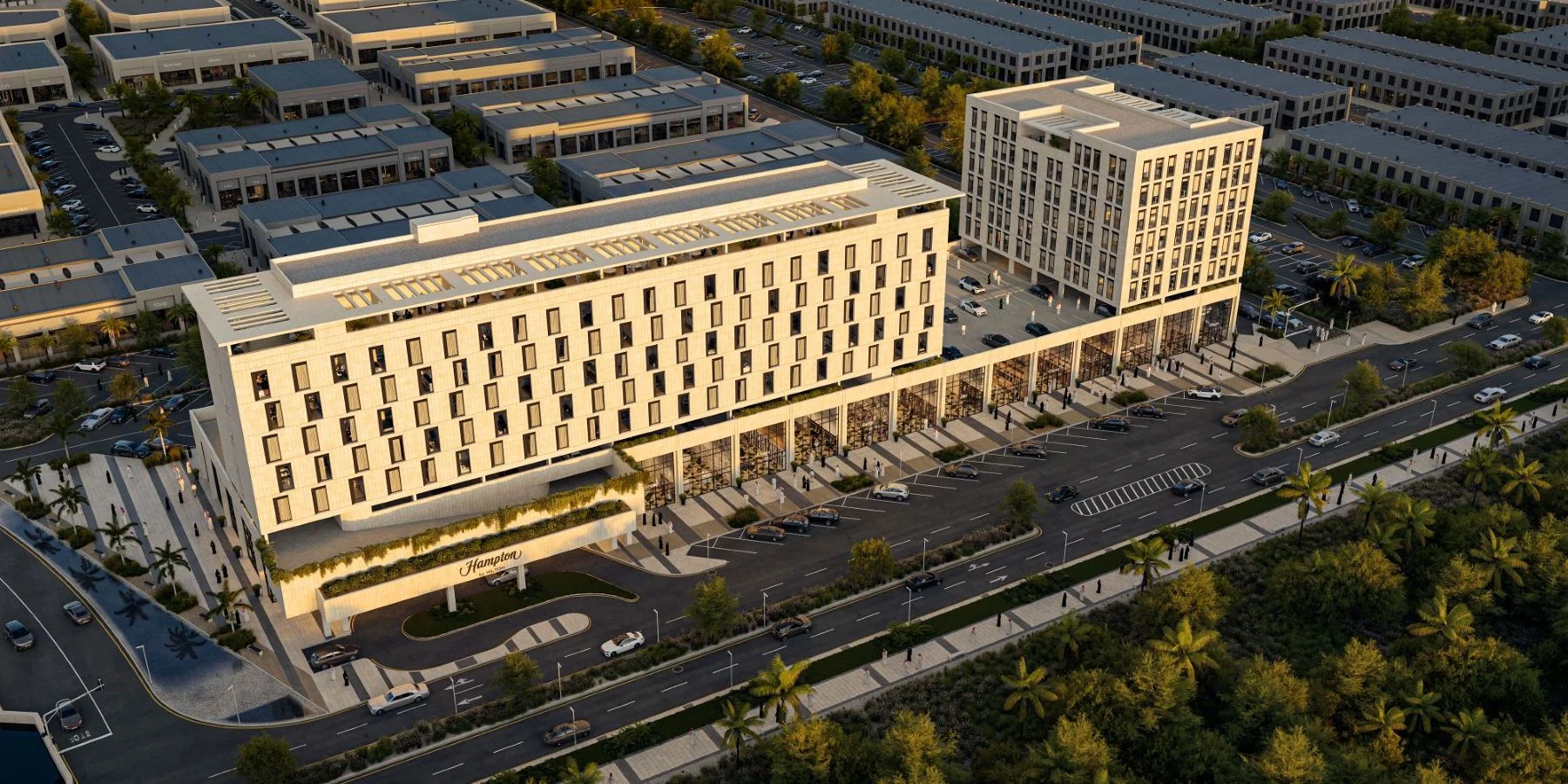 A mixed-use hospitality development in Jeddah covering a Built-Up Area of 27,000 sqm and valued at 65 million SAR. The project includes 216 hotel keys, retail, and office components, combining leisure, business, and convenience under the global Hilton brand.